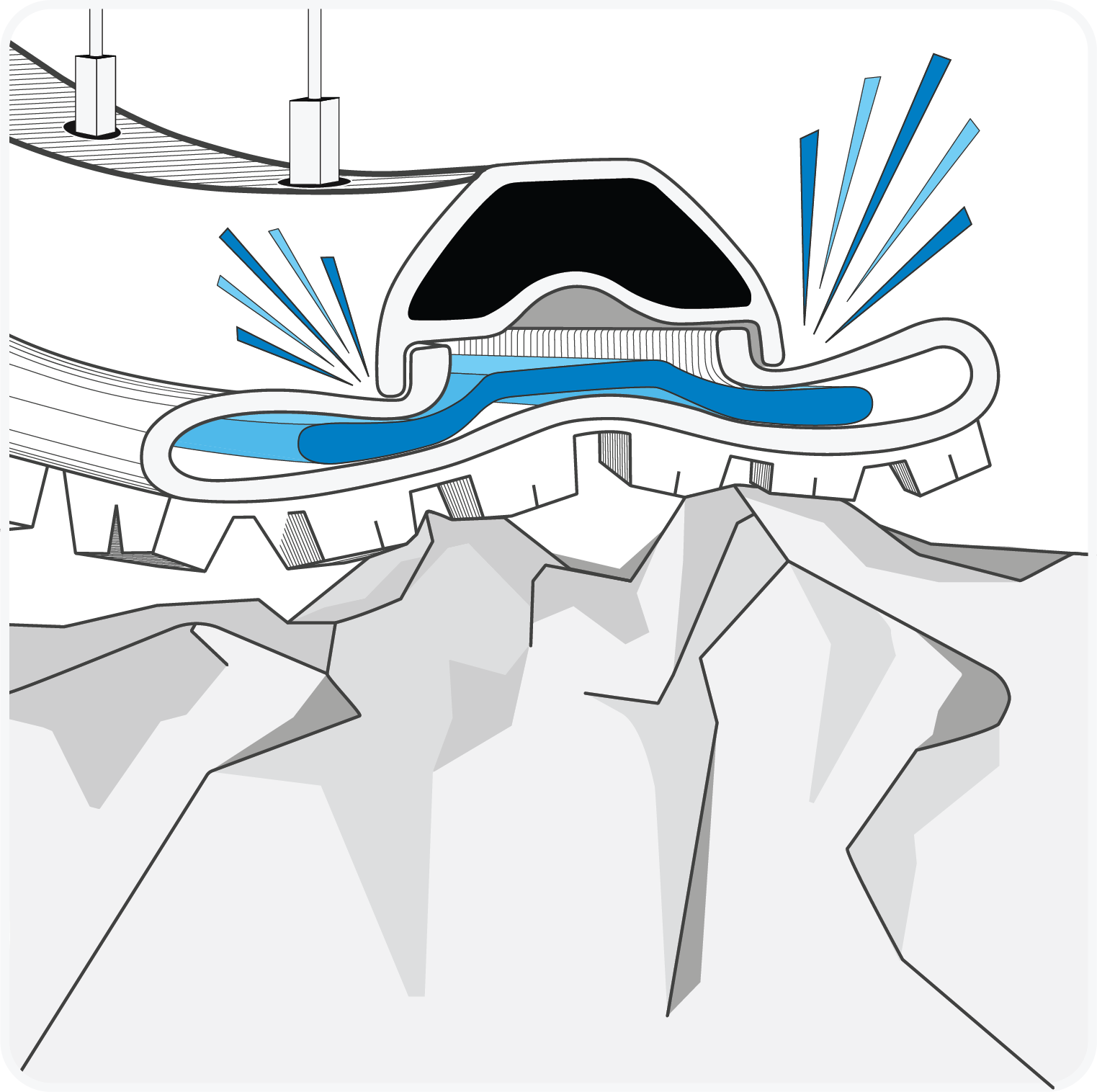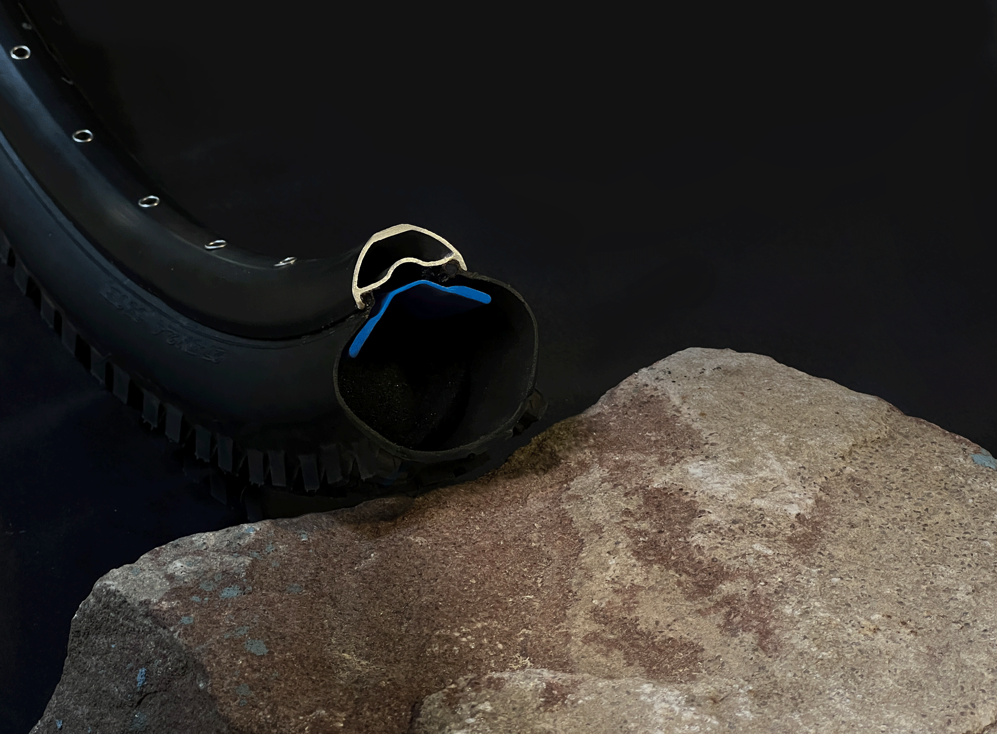 Your bike’s suspension has a bottom-out bumper, but your tire doesn’t. Right now you smash your rims into rocks and cross your fingers they don't break🤞